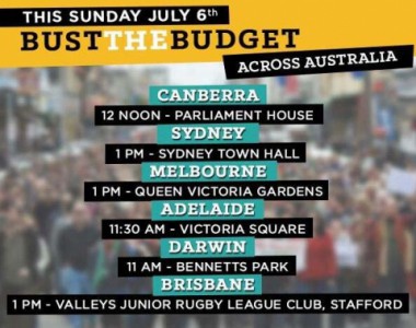 7 July 2014 – Australians rallied around the nation on Sunday to protest the federal government’s budget as a crop of wildcard Senators prepared for their first sitting in Canberra on Monday.