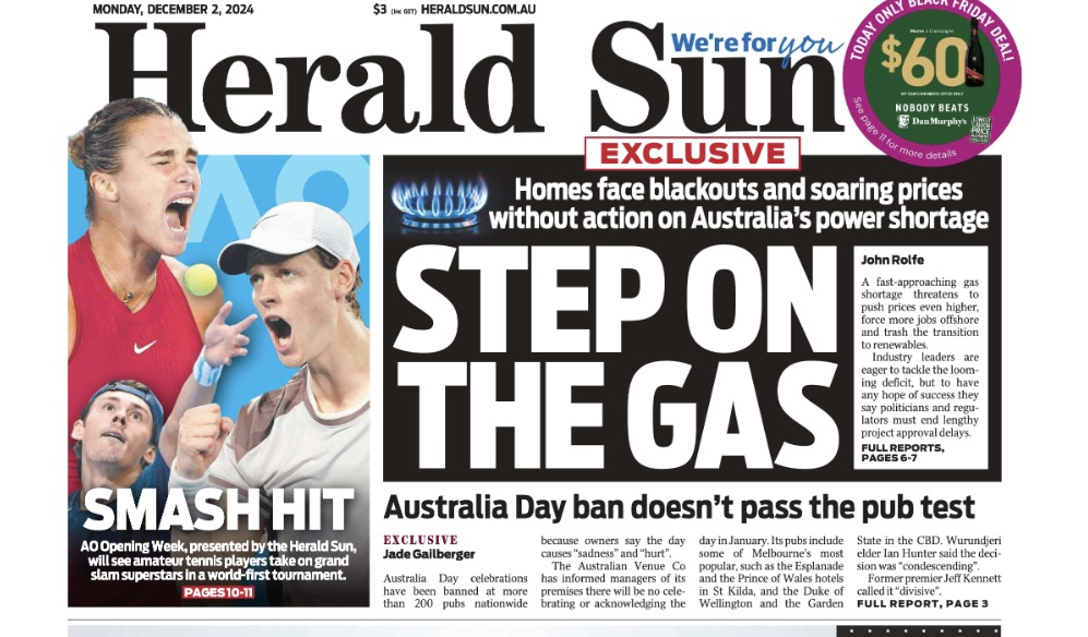 The Courier Mail ran the headline: “Step on the gas – only way to avoid higher bills, blackouts.”