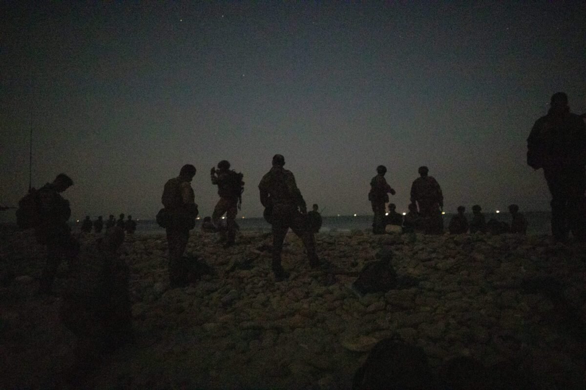 Getting no reply to our texts, Old Mate 2 and I crossed the road again to stay in cover. Our trajectory was taking us up Expletive Hill, a coastal bluff that climbed to a summit above the port. While planning this mission over satellite maps, weโd named the hill after our guide had warned it was expletively rough terrain. We were now coming up against an apparently impenetrable wall of boulders, rubber vines and thorn trees. Detouring south towards the road, we saw it was lit up by the equally impassable blaze of four high powered spotlights, dominating the plain and foothills south of our hill.
