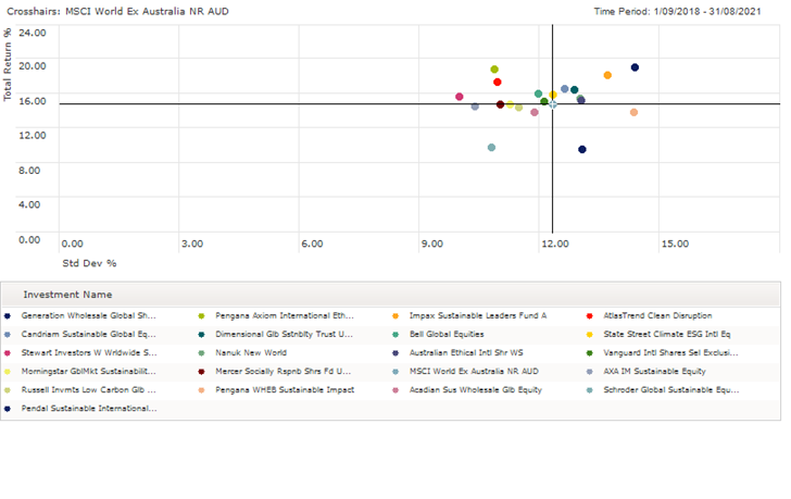 However, over the most recent three years, seven funds achieved higher returns with lower risk than the MSCI Index, six funds had higher returns with higher risk, four funds delivered lower returns with lower risk and just two funds had lower returns and higher risk.