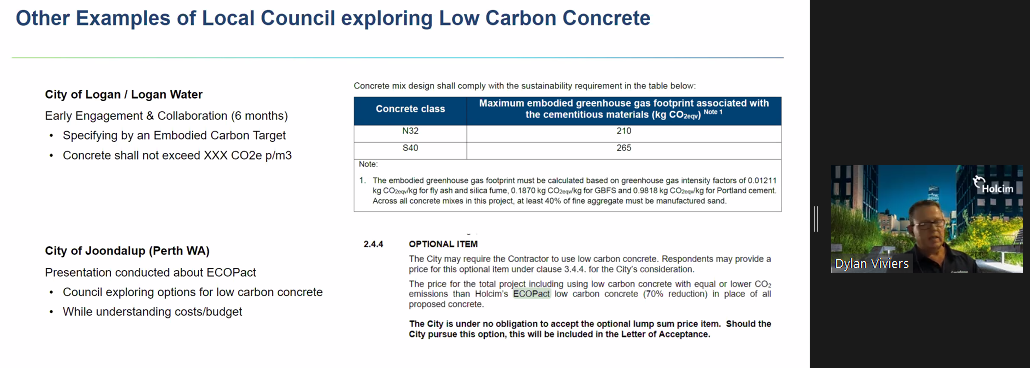 Holcim’s Dylan Viviers, who worked with the City of Brisbane on early engagement with low carbon concrete, said that technology had rapidly improved while most developers would have had bad experiences five to 10 years ago with contractors trying to use low carbon concrete.
