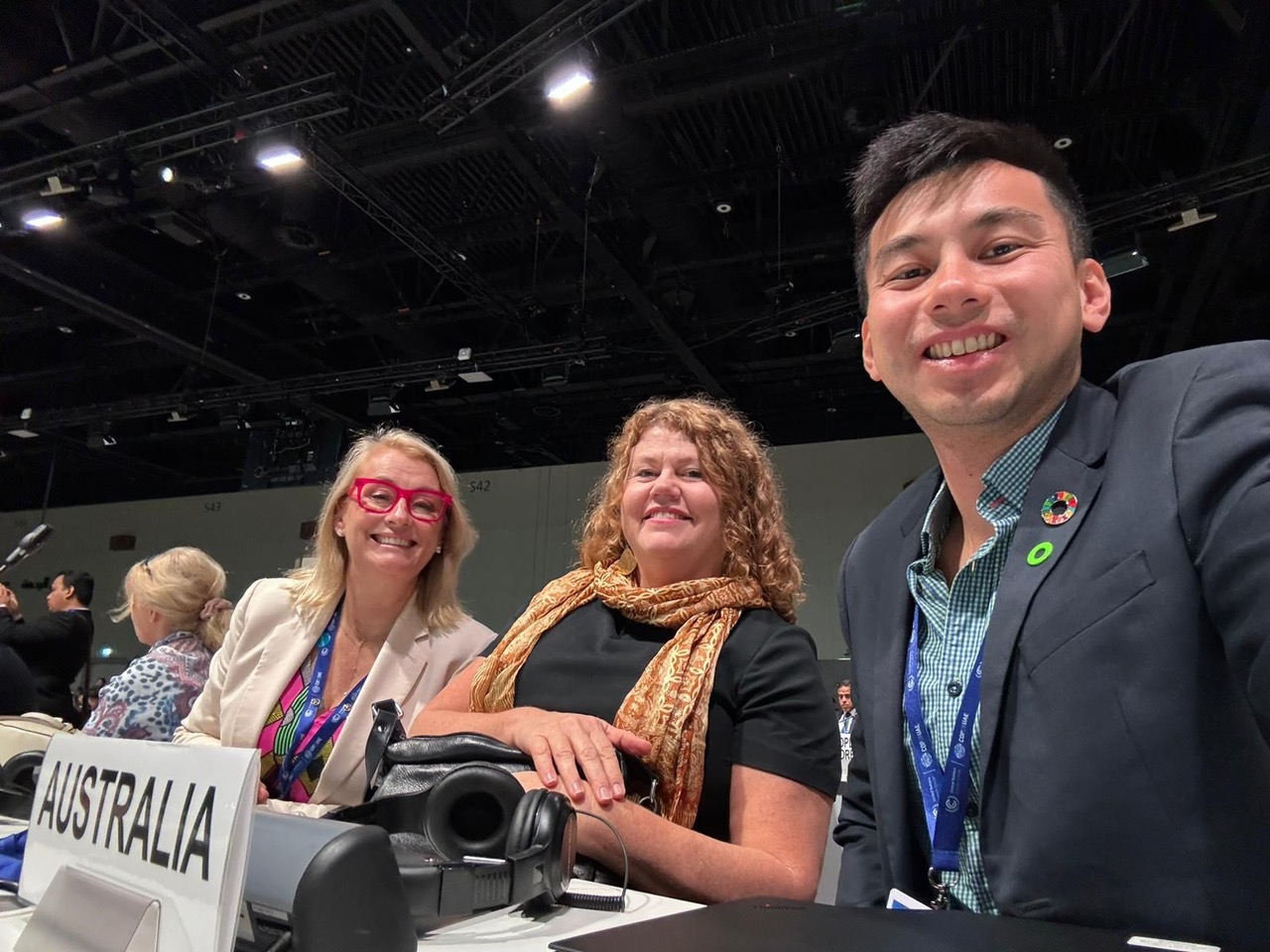 Cr HY William Chan with Lord Mayors Sally Capp and Anna Reynolds at COP28