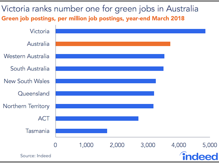 Victoria emerged as the state with the most demand for green jobs, with the only state to exceed the national average, followed by Western Australia and South Australia.