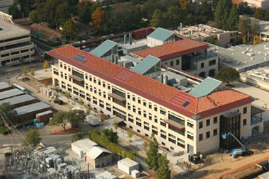 Stanford University is also acting on climate change with the Stanford Energy System Innovations, a new energy system that is estimated to reduce campus carbon emissions by 50 per cent and reduce water use by about 15 per cent. It also features high performance buildings including the Knight Management Center and the Jerry Yang and Akiko Yamazaki Environment and Energy Building.