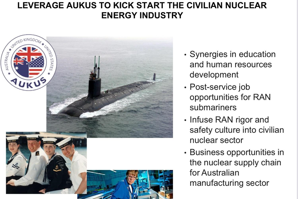 - Leveraging the AUKUS nuclear submarine military pact with the US and the UK to drive a civilian nuclear industry