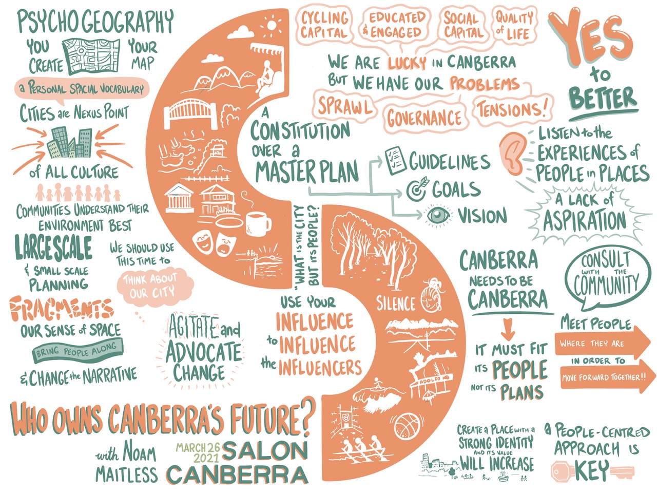 These maps fascinate Noam Maitless, design director with GHDWoodhead and Associate Professor in the Practice of Urban Systems at the Australian National University. I sat down recently for a discussion with Maitless to talk about Canberra, how the nation’s capital fared during the pandemic, and to explore some ideas around the “psychogeography of place”.