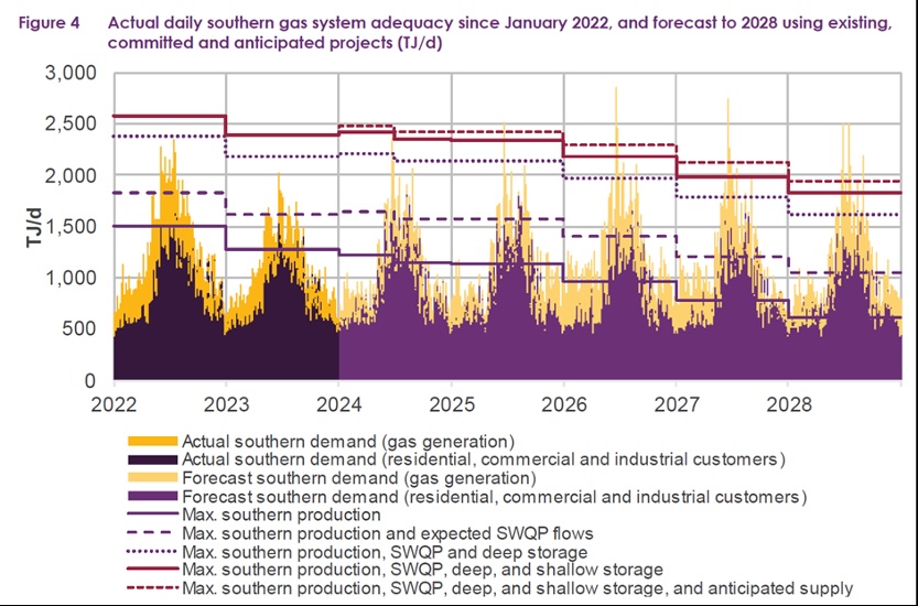 As we transition towards electrified heating, this will create a new peak in electricity demand on cold winter days. You can see this in the latest Australian Energy Market Operator (AEMO) graph below, where cold winter days were the primary driver for peak gas and gas-fired electricity demand in southern Australian states in 2023.