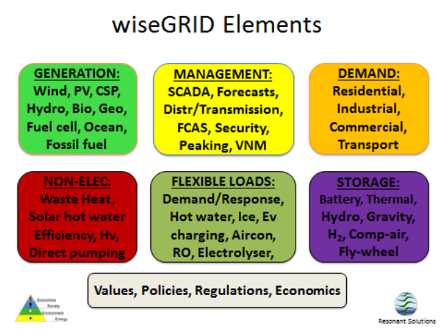 An integrated wiseGRID model considers the generation type, supply/demand, management, security, storage in the context of what offers best value to society. How many outage hours a year are consumers prepared to have if it brings lower costs? What policies and regulations should be in place so that an efficient market operates?