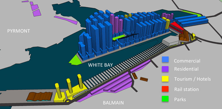 The combination of transport infrastructure, urban development, concentration of complementary use types, and connections to nearby professional support precincts, such as exist in Pyrmont and could develop in Balmain, would physically mirror the integrated urban economic strategies advocated by Arup’s Luke Thompson. Thus, an inner-city precinct could be developed holistically.