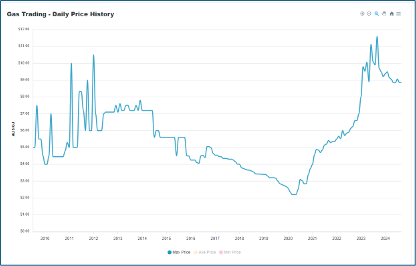In the nearly four years since the Waitsia deal, what has happened to the wholesale price of gas in WA? The chart below (from www.gastrading.com.au) reveals that the impact of this policy change has been quick and dramatic.