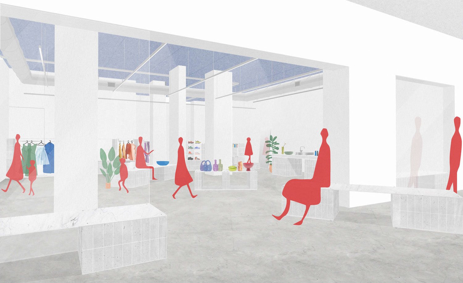 A team consisting of Second Edition, Heleana Genaus and Mud Australia has proposed a shopping centre fitout comprised of sustainable construction materials made of recycled waste.