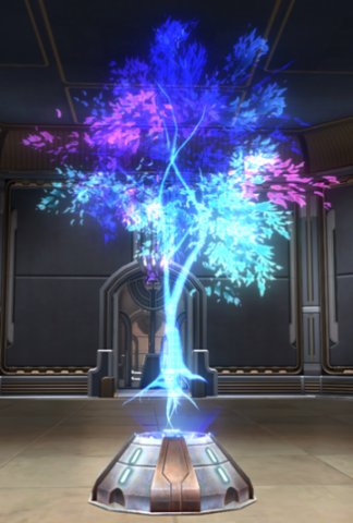 A hologram in the shape of a eucalyptus the foyer. The tree will come to life with colours, sounds and moving images.
