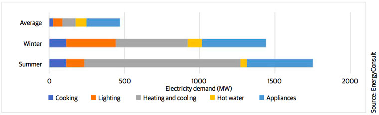 Energy efficiency programs could also help. When SA suffered blackouts because of a 90 megawatt (MW) shortfall, demand was around 3000?MW. At that time, household cooling was probably over 1000?MW: an ongoing building and airconditioner energy efficiency program could have avoided the problem, as shown in the graph.
