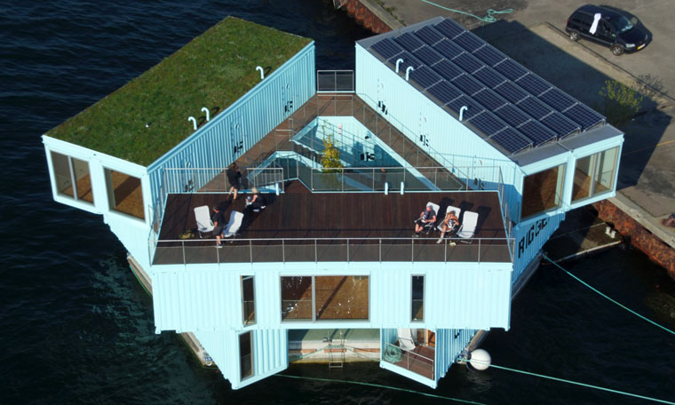 Over in Denmark, the Urban Rigger in Copenhagen by BIG – Bjarke Ingels Group is a carbon neutral floating home made out of shipping containers.