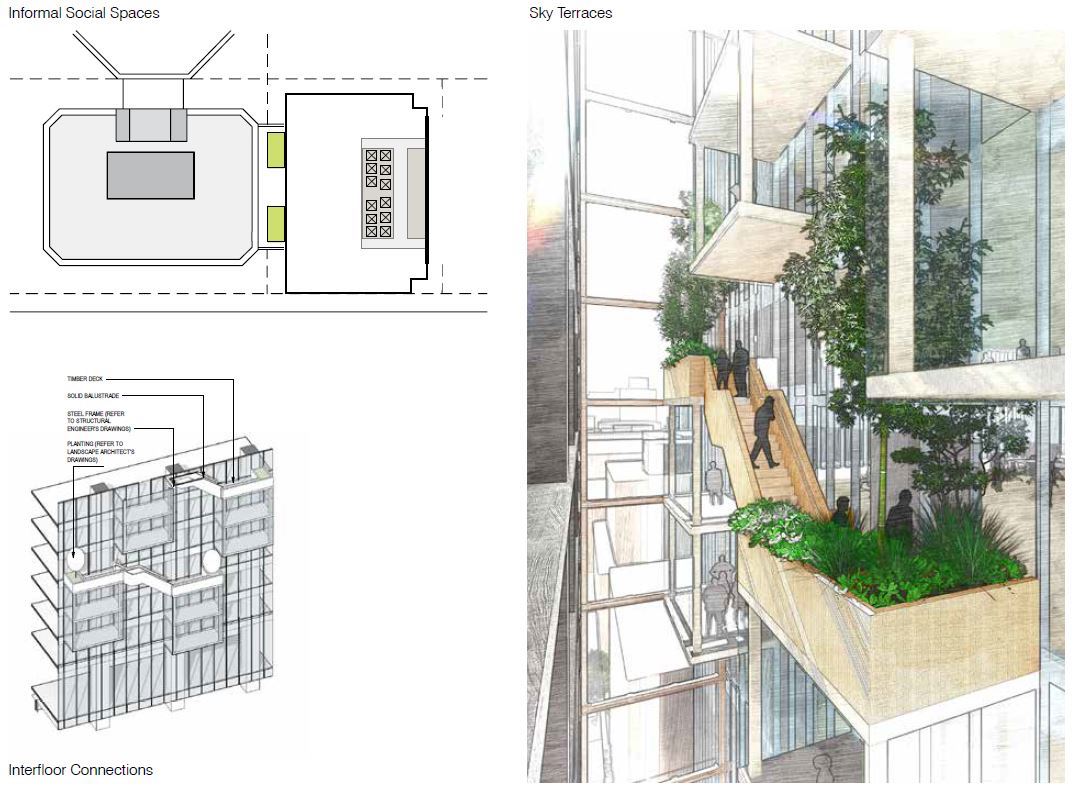 The Brisbane project, Triplet, owned by QIC, connects two buildings, a new tower and a “perfectly good” ’80s building, which did not need to be knocked down.