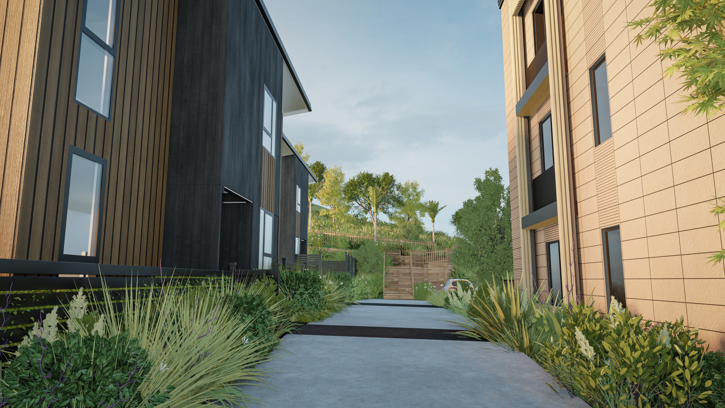 The development, which is part of a bigger public housing development to replace eight old state homes with 40 new ones in the Auckland suburb of Glendowie, is also meant to encourage biodiversity. It will have permeable paving stones and biodiversity corridors populated by a mixture of native trees.