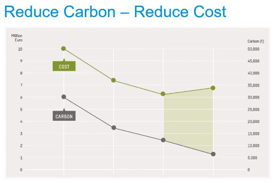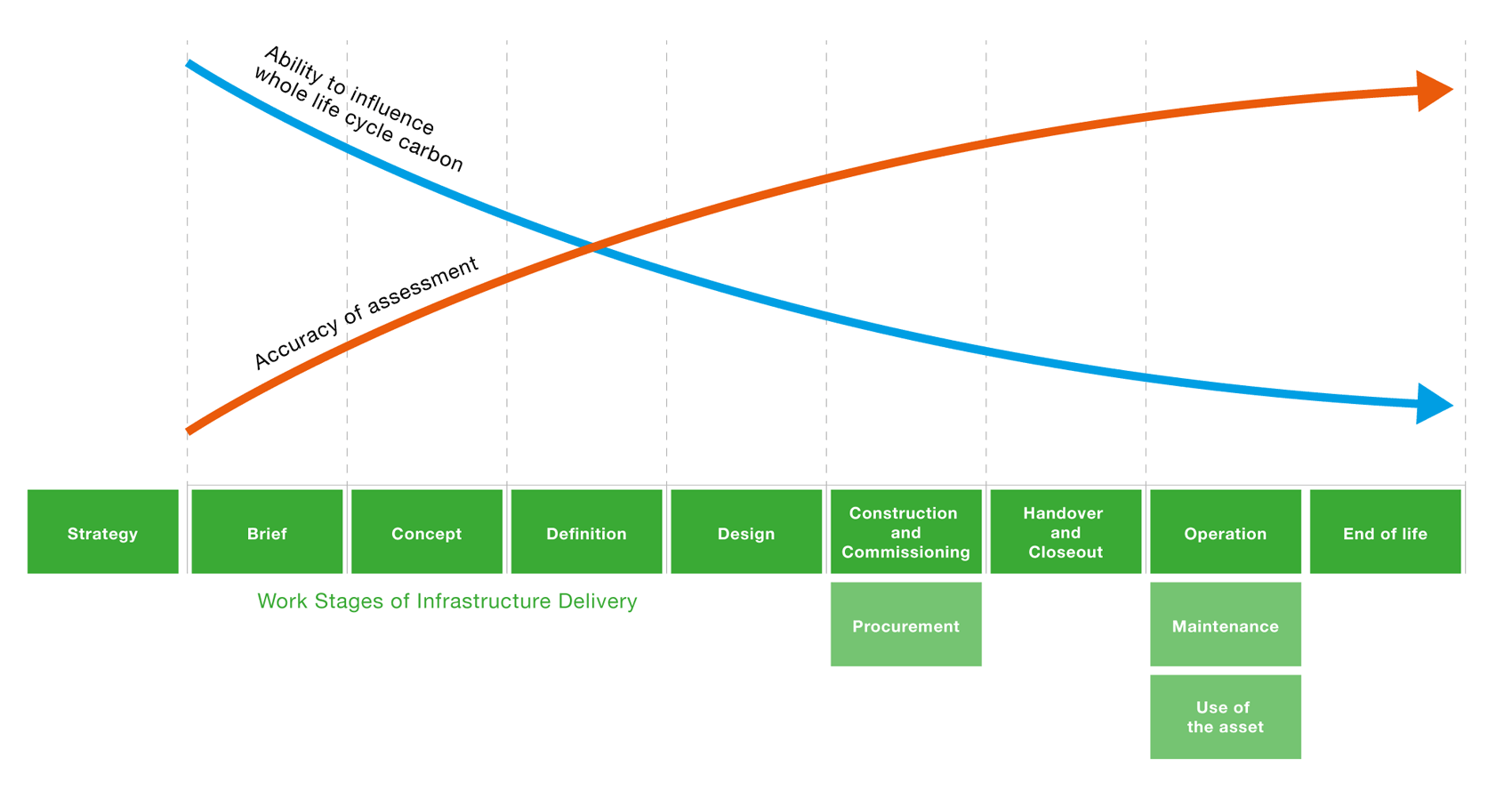 This logic results in the carbon reduction curve, taken from the UK government’s Infrastructure Carbon Review:
