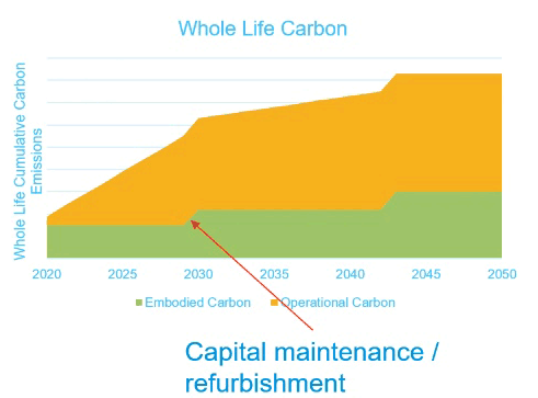 As the electrical grid decarbonises and buildings become better performing, and if you source renewable electricity, then the amount of carbon emissions embodied in the manufacturing process becomes a greater part of the whole life cycle emissions of a building or operation.