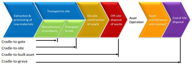 “If undertaking an assessment for an Environmental Product Declaration then there are internationally agreed โmodulesโ that define the scope of the analysis. The choice is up to the supplier. For example, a material supplier may choose to use a โCradle to Gateโ approach, because after the product leaves the factory the supplier has little/no control over how the product is used.