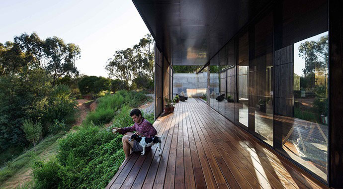Balanced along the edge of a former gold mine quarry in Yackandandah, Victoria, Sawmill House is a poetic example of young Melbourne and Hobart-based studio Archierโs belief in open, culturally responsive design. A key feature of the residence is the use of recycled concrete blocks to form the dwellingโs outer perimeter. Sawmill explores the adaptable reuse of a major by-product of the building industry โ the thousands of tonnes of waste concrete that goes into landfill each year.