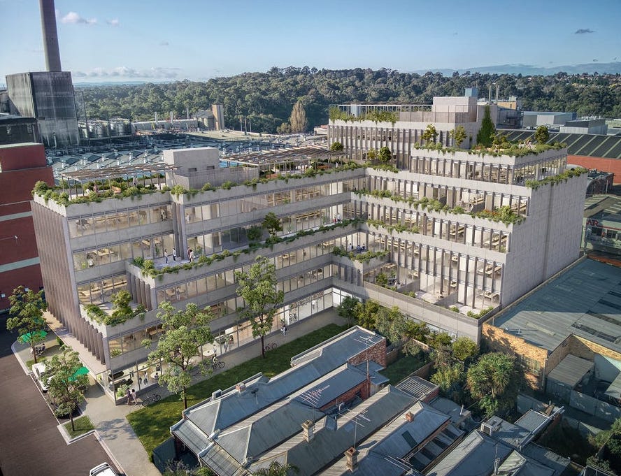 The office building in Abbotsford, near Collingwood and the Skipping Girl sign in Melbourne’s inner-north, is currently under construction, to be ready for you to move in April 2023. That might make you feel impatient, but hold on to your horses because this one’s worth the wait.