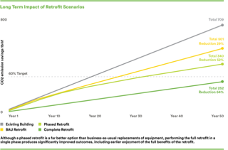 So a retrofit that features a completely new exterior skin, vastly improved interior conditions, and highly responsive, efficient systems will deliver an increase in market value several times greater than the costs.