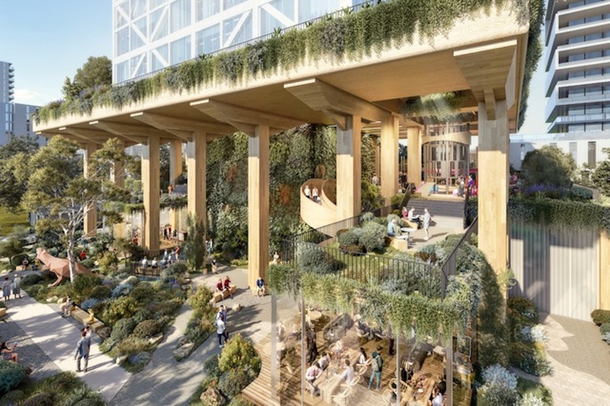 Interestingly the mass timber in this building will be structural “and carries real load” – in conjunction with steel and concrete – this is a different approach to the Atlassian building for example where the building is a concrete and steel building with four storey timber habitats which, beyond the four storeys, are not structural “as I understand”, he says.
