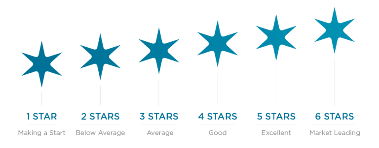 NABERS ratings give a building a rating from one to six stars – 1 Star being “making a start” and 6 Stars being “market leading”.