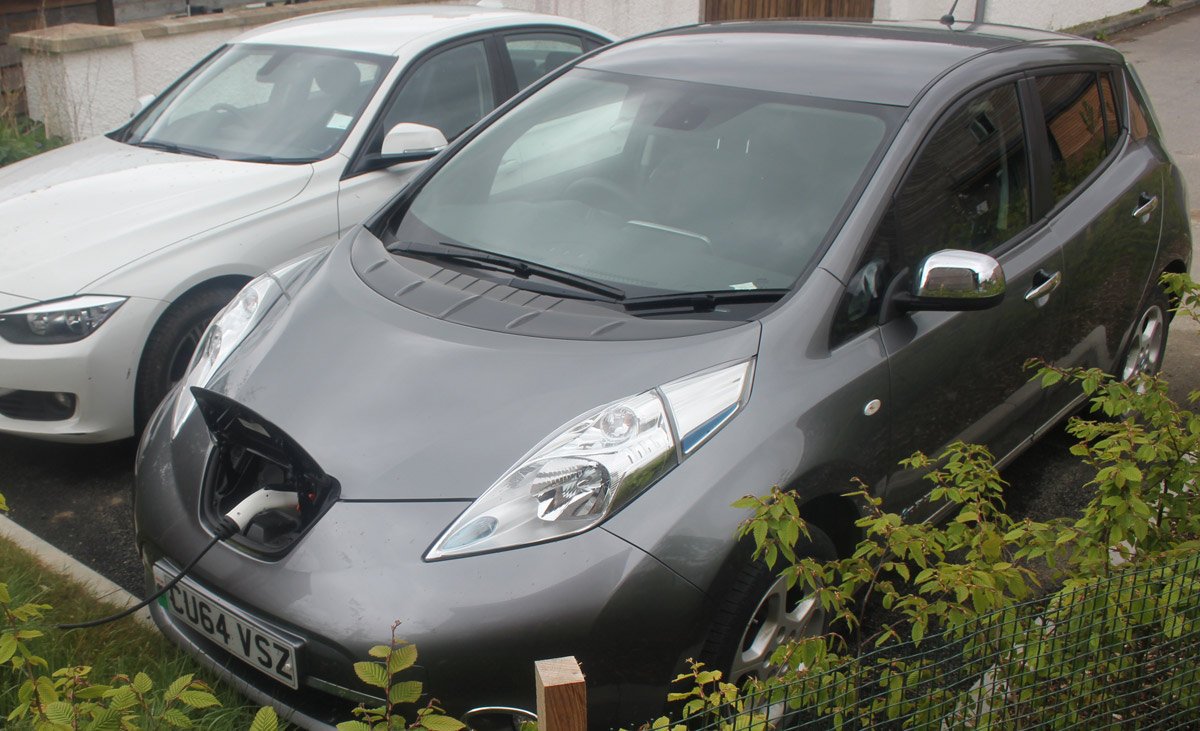The occupants of the estate have been given a Nissan Leaf to use collectively, charged by the solar panels on the roofs.