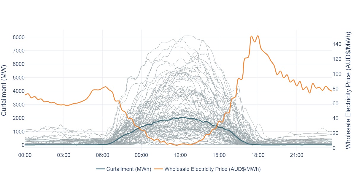 Curtailment, while necessary to maintain the stability of the system, is renewable energy going to waste. As can be seen in the graph, the quantity of waste is enormous.
