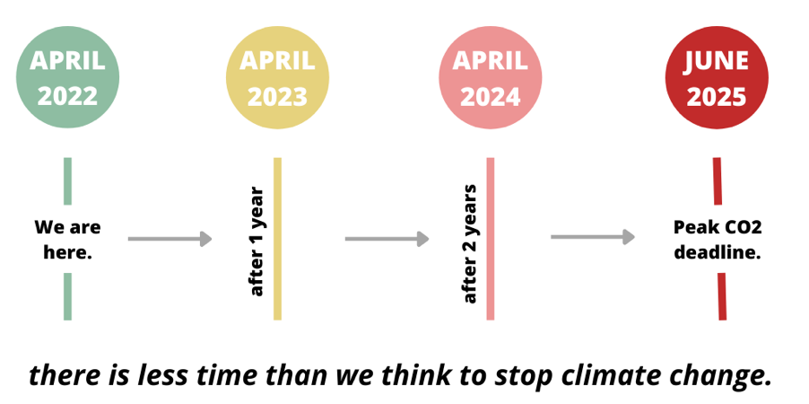 In its April 2022 report the UN says we humans have 30 months left to cut the pollution – until 2025 – when the IPCC expects we will lose the slight remaining potential to prevent cascading, out of control, climate collapse.
