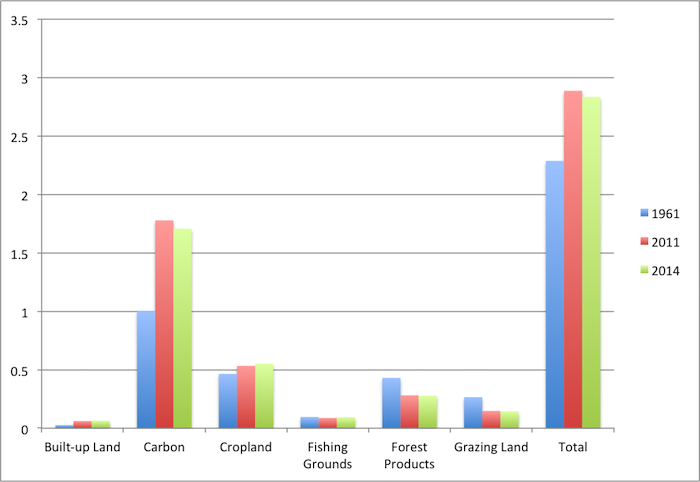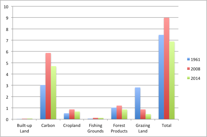 This is what the worldโs ecological footprint looks like over this period: