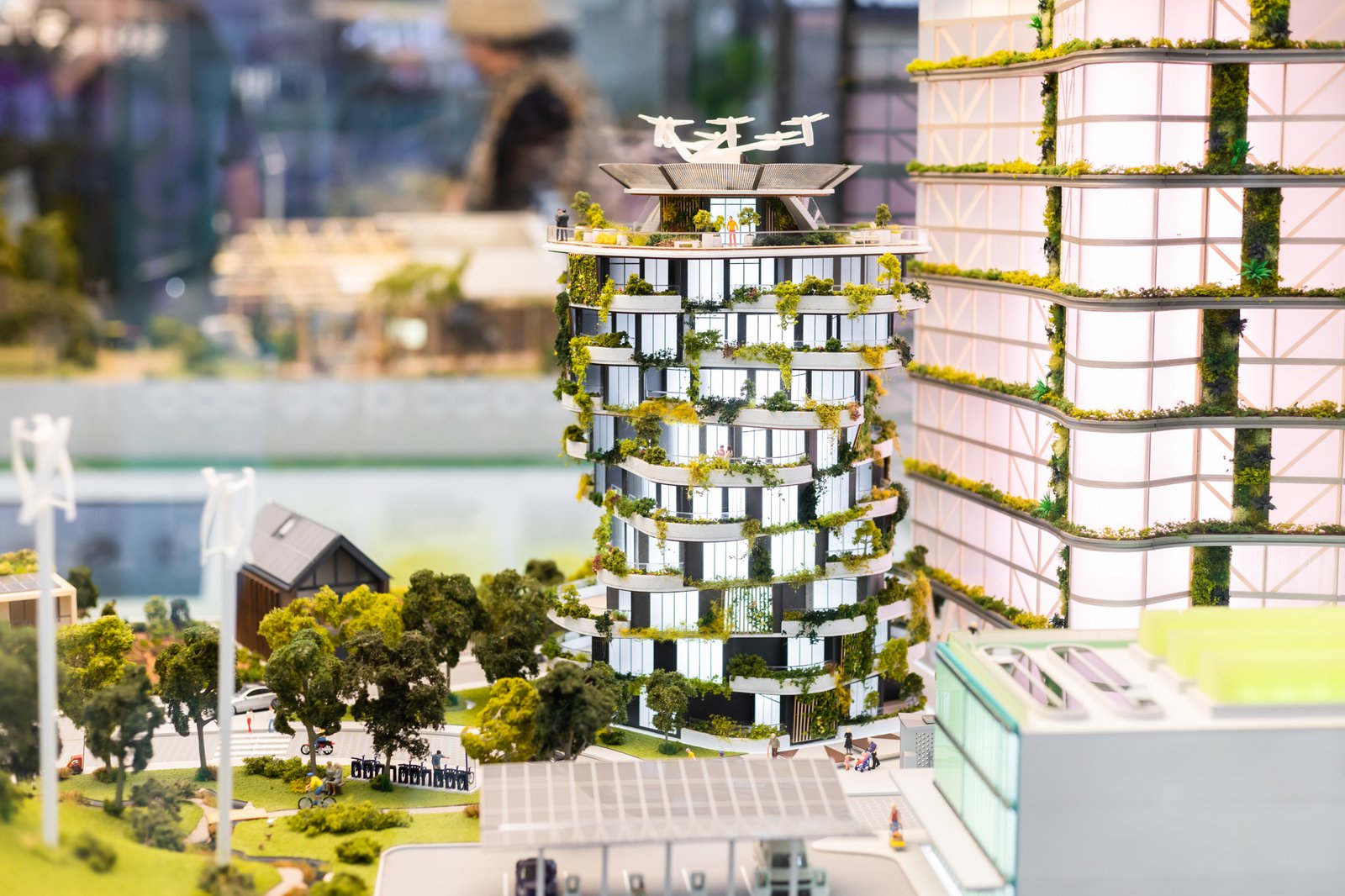 The dioramas, classic three-dimensional miniature displays, show scenes such as “sustainable landscapes that are slightly futuristic”, “urban house and gardens, regenerative gardens, forests with cultural burning taking place and oceans with seaweed harvesting and wave turbines”.