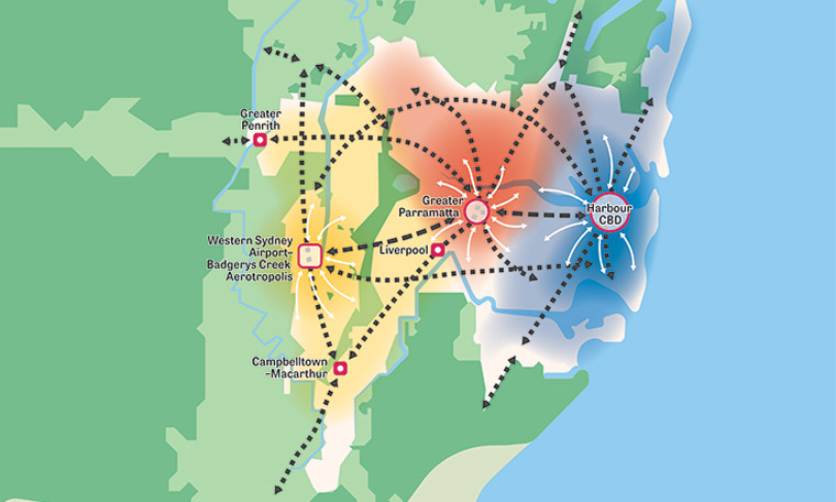 The rationale behind the move is that currently only 39 per cent of Sydneysiders can get to their jobs and other services within 30 minutes. Decentralising the city into three aims to boost that figure to 70 per cent by 2056.
