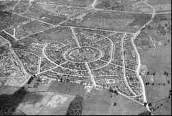 Often, they were networks of connected villages or neighbourhood units, sometimes constructed around schools like Aspley above, separating pedestrians from cars, and designed to be relatively self-contained (at least as far as living nd working went) to minimise commuting. The land was selected by the local authorities concerned.