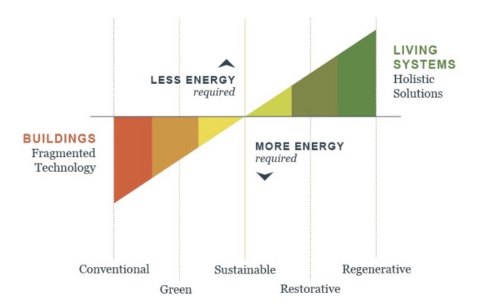 By managing water systems and improving soil health for food production, daily economic activities would have a positive impact on local ecosystems. Positive impact development is referred to as regenerative development and has parallels with regenerative agriculture.