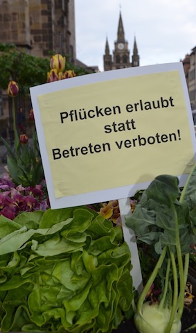 Agriculture was transplanted literally into urban green space to make healthy food produce accessible to everyone, harvested by the citizens, free of charge. Fruit and vegetable beds were planted around the castle ruins in the centre of town, with the motto: โโpicking allowedโ instead of โentering forbidden’โ.